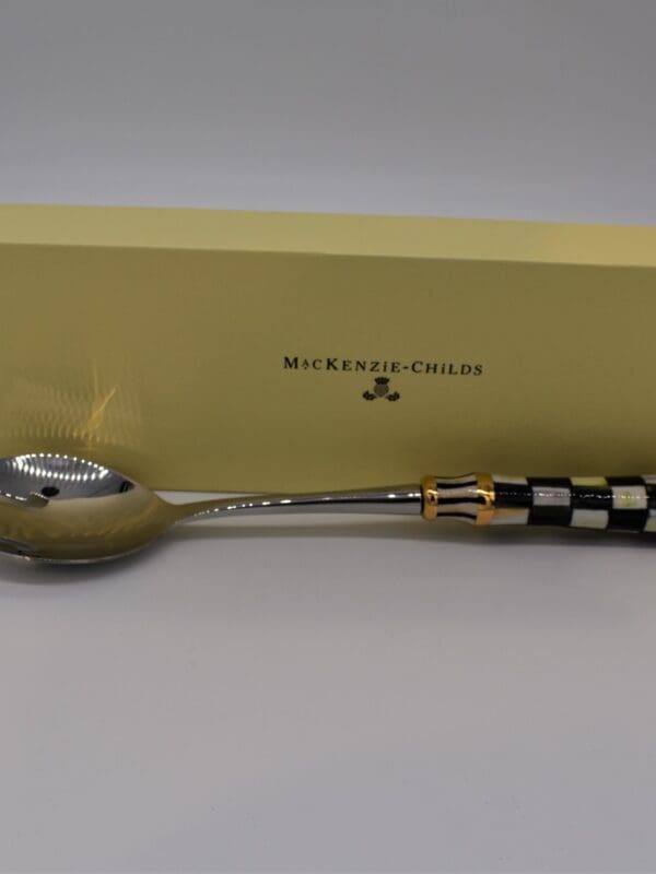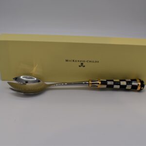 Select a set of two Courtly Check® Casserole Forks to present a seasonal salad smartly. With a porcelain handle, handmade and hand-painted in classic black and white Courtly Checks, and embellished in gold lustre, this stainless steel fork offers stylish service. Presented in a satin-lined box.