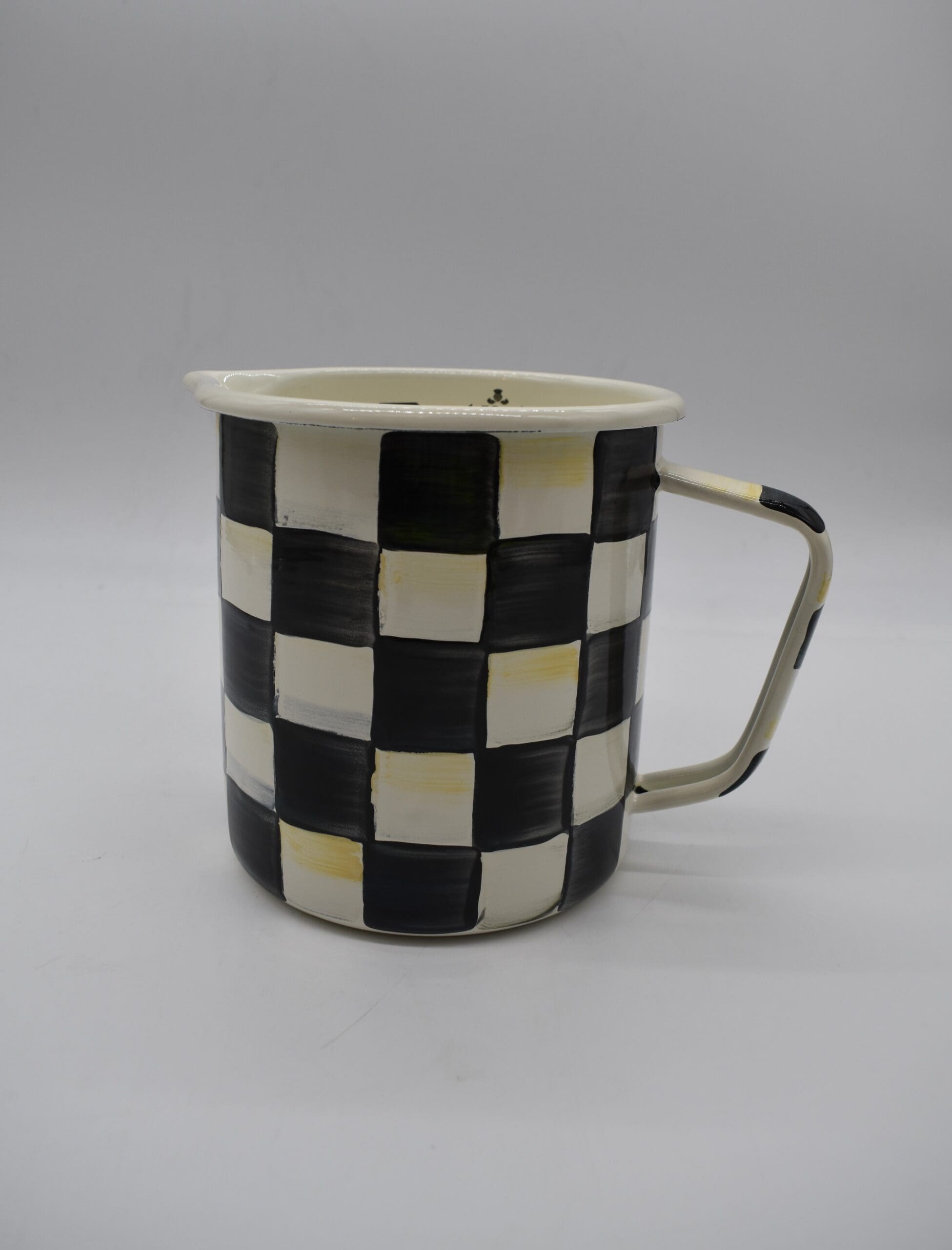 Hand-glazed, heavy-gauge steel with hand-painted Courtly Check decoration and rolled edge. Pieces may vary due to the handmade nature of each product. Imported.