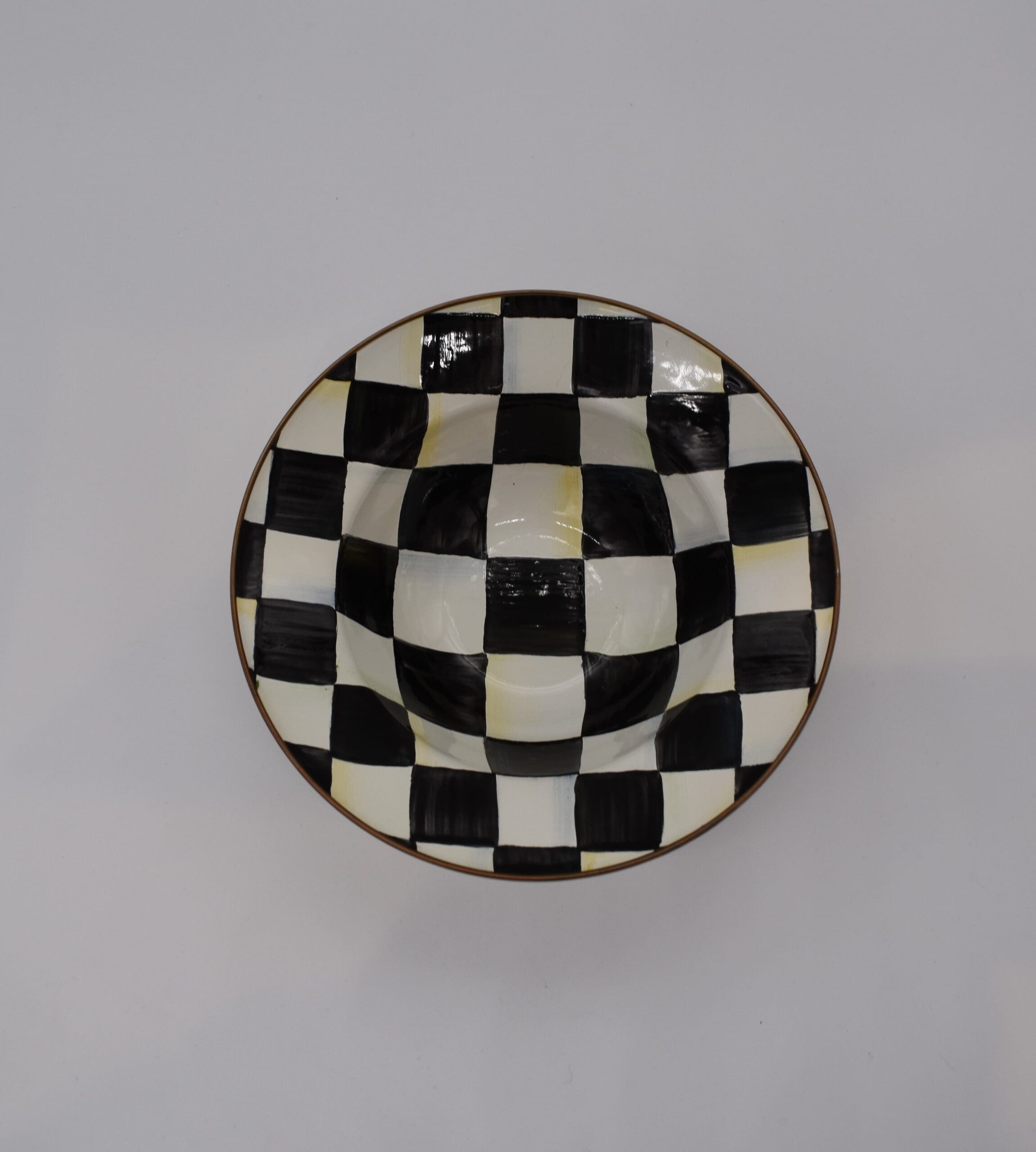 Sometimes a subtle tweak can make a classic feel unexpectedly fresh. Our Courtly Check® Enamel Petal Breakfast Bowl updates our beloved color-dragged black-and-white checked pattern by adding an elegantly scalloped edge.