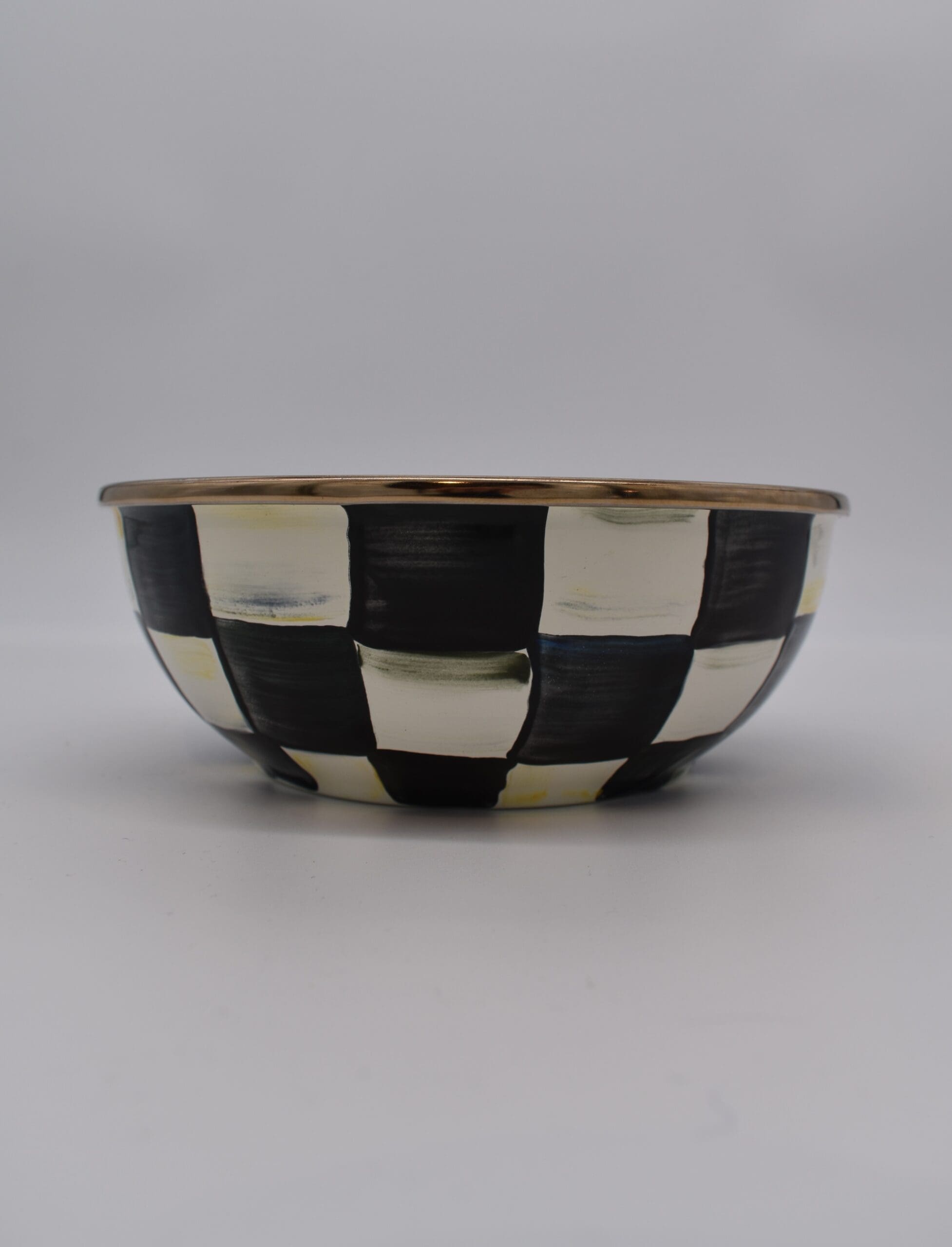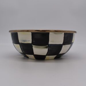 Heavy-gauge, hand-glazed steel underbody with hand-painted Courtly Checks, rimmed in bronzed stainless steel. Pieces may vary due to the handmade nature of each product. Imported.