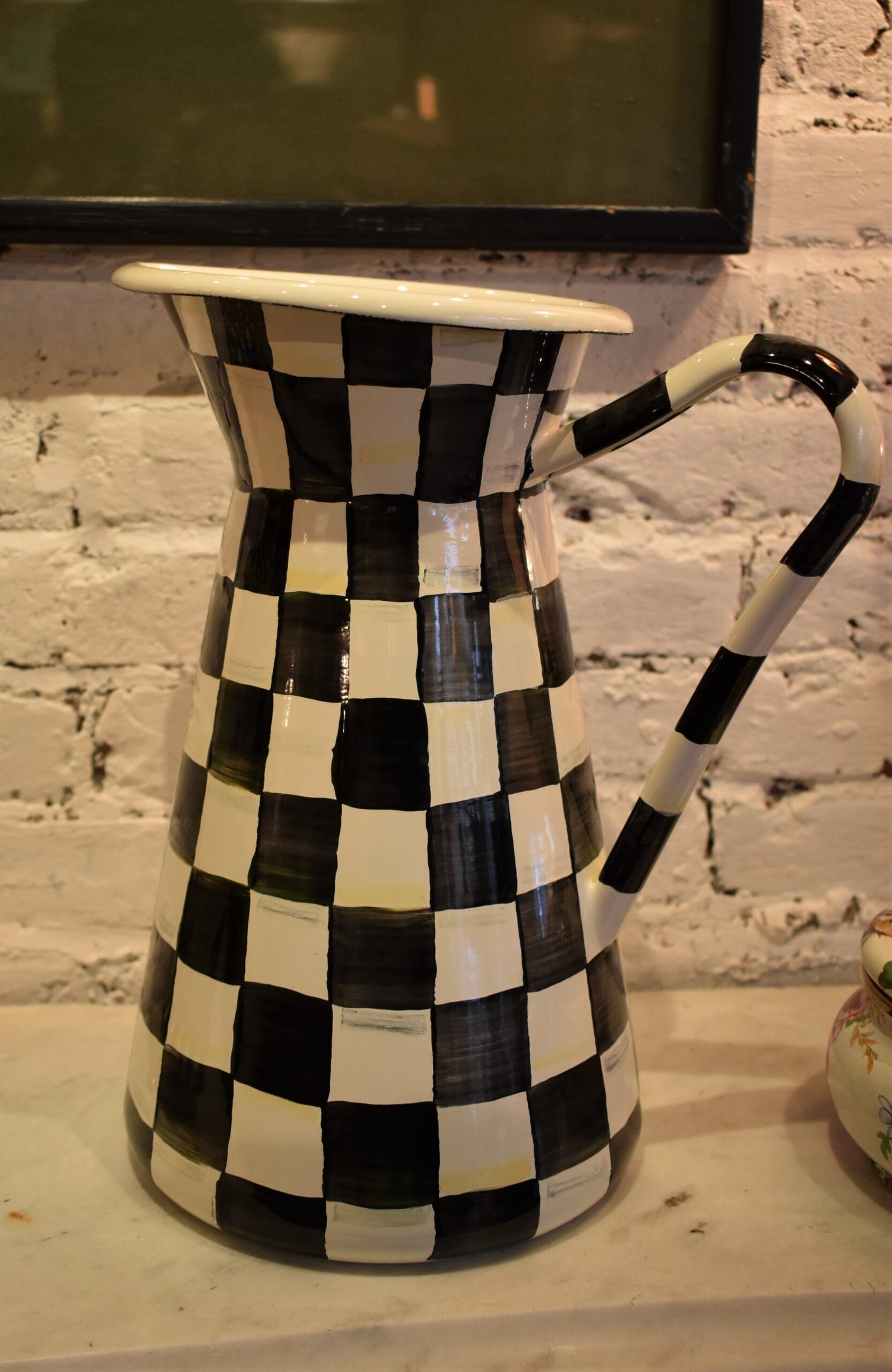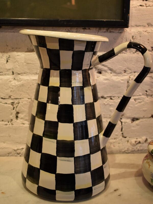For lemonade, iced tea—or better yet, a blend of both—nothing beats our Large Courtly Check® Enamel Practical Pitcher. The hand-painted black and white checks are woven with jewel tones for a refreshing way to integrate everyone’s favorite pattern into the everyday.