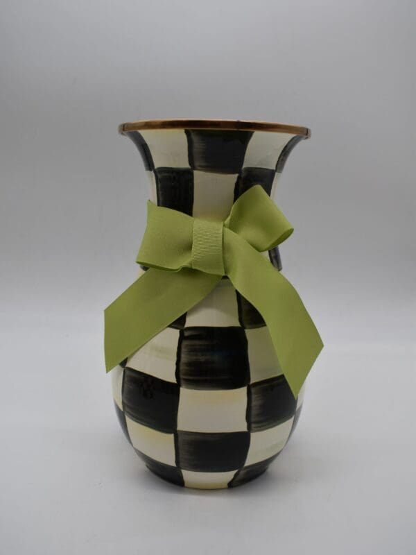 Heavy-gauge, hand-glazed steel underbody with hand-painted Courtly Checks, rimmed in bronzed stainless steel. Grosgrain ribbon bow included. Pieces may vary due to the handmade nature of each product. Imported.