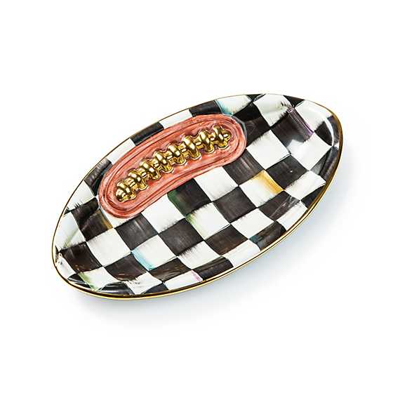 Our Courtly Check Football Plate scores in more ways than one. Made start to finish by our artisans in Aurora, New York, this handmade, hand-glazed, and hand-painted ceramic piece is decorated in our signature Courtly Check, with gold lustre on the laces. It’s the perfect size for small servings or acting as a trinket tray.