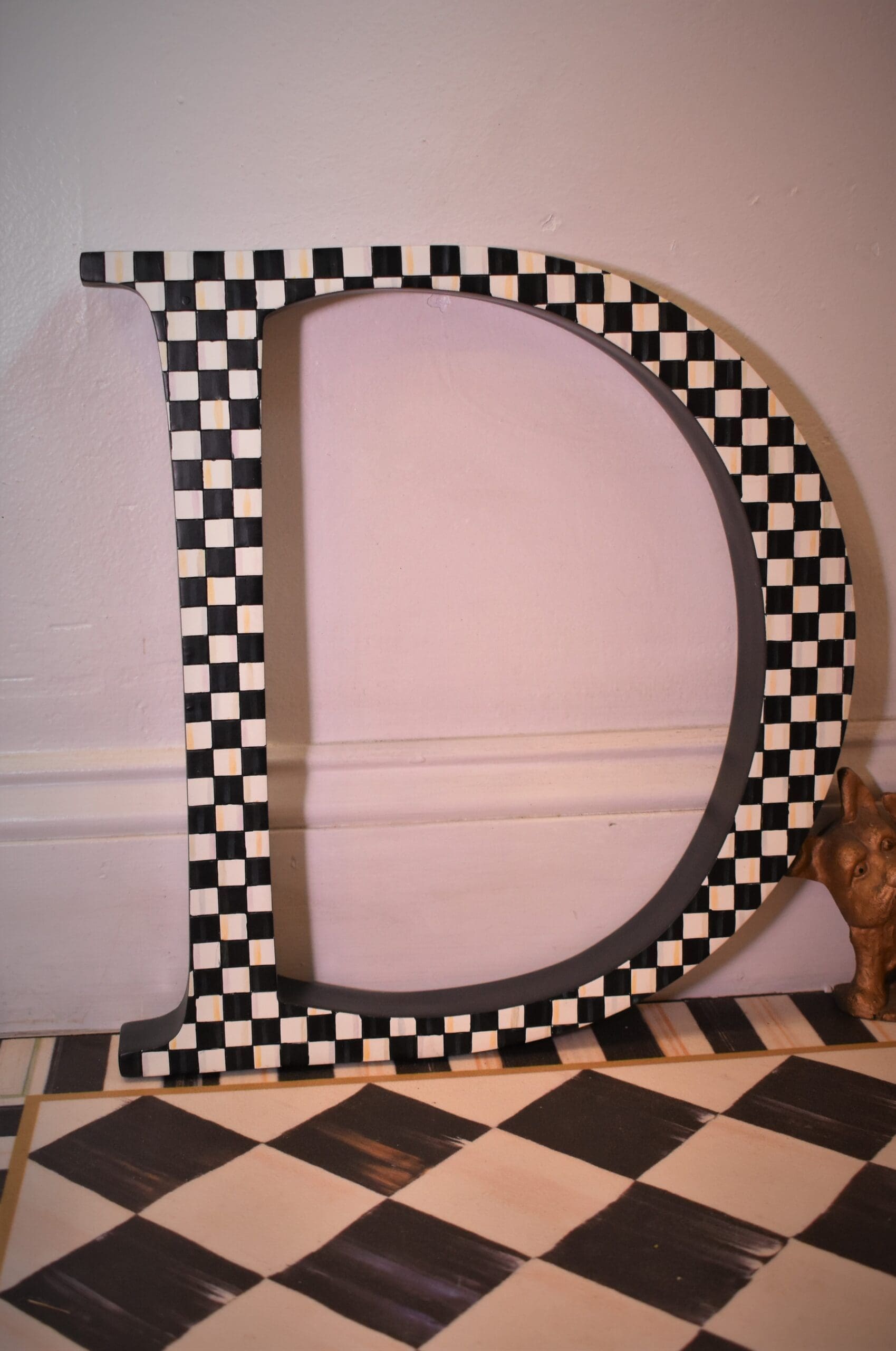 Express yourselfwith our Courtly Check® Letter. Hand-painted in our signature color-dragged pattern, this oversized letter displays easily on a wall, thanks to sawtooth hangers on the back.
