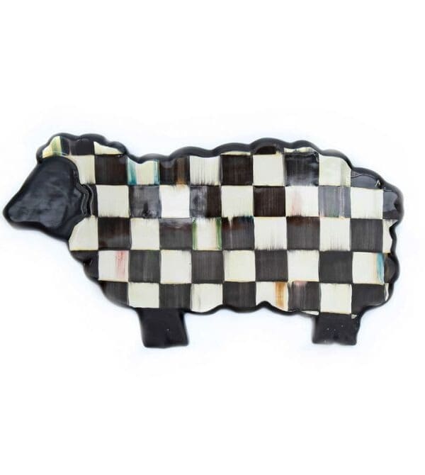 Heavy-gauge steel underbody hand-painted with checks and ceramic glaze, embellished with brass accents and rimmed in bronzed stainless steel. Pieces may vary due to the handmade nature of each product. Imported.