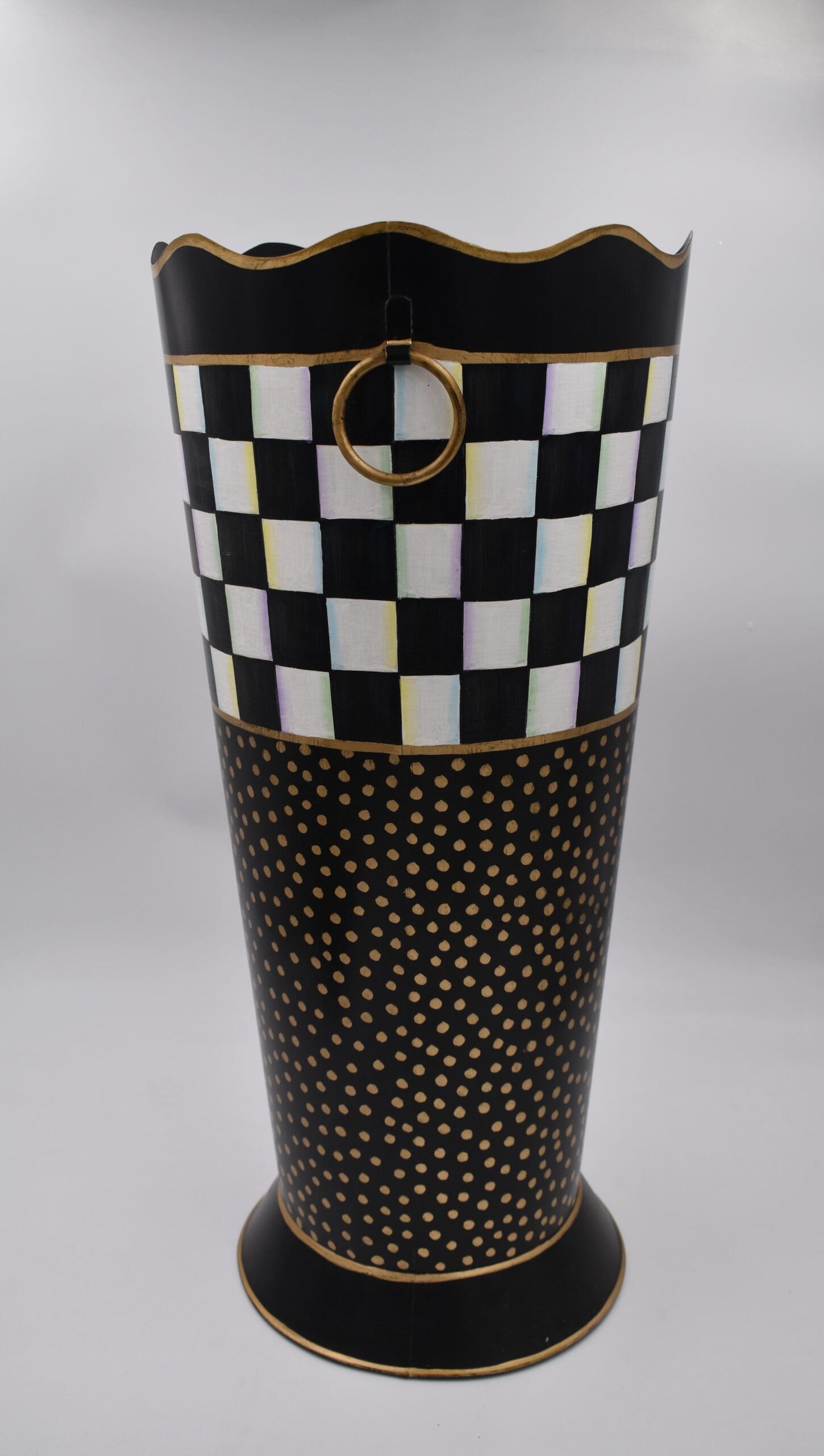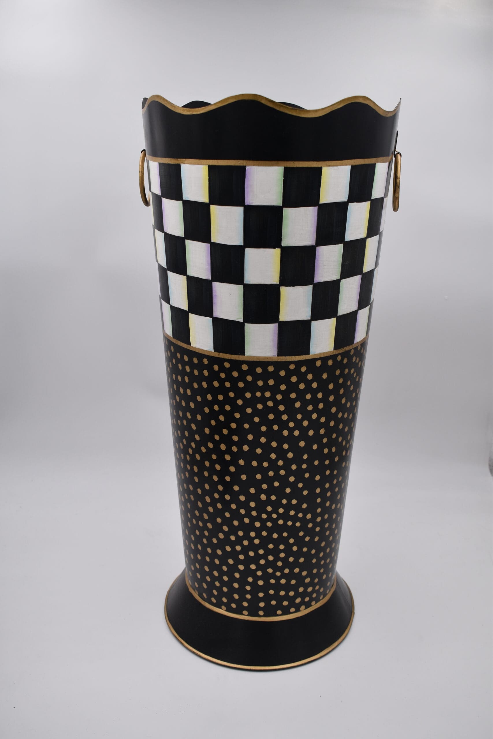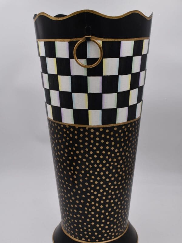 When it rains, it pours—and with the Courtly Check® Umbrella Stand, we can’t help but celebrate the showers! This toleware collection updates a classic craft with a MacKenzie-Childs twist: hand-painted Courtly Checks and jazzy golden polka dots that go beyond basic black and white. This handsome metal container is the perfect place to park your parasols.