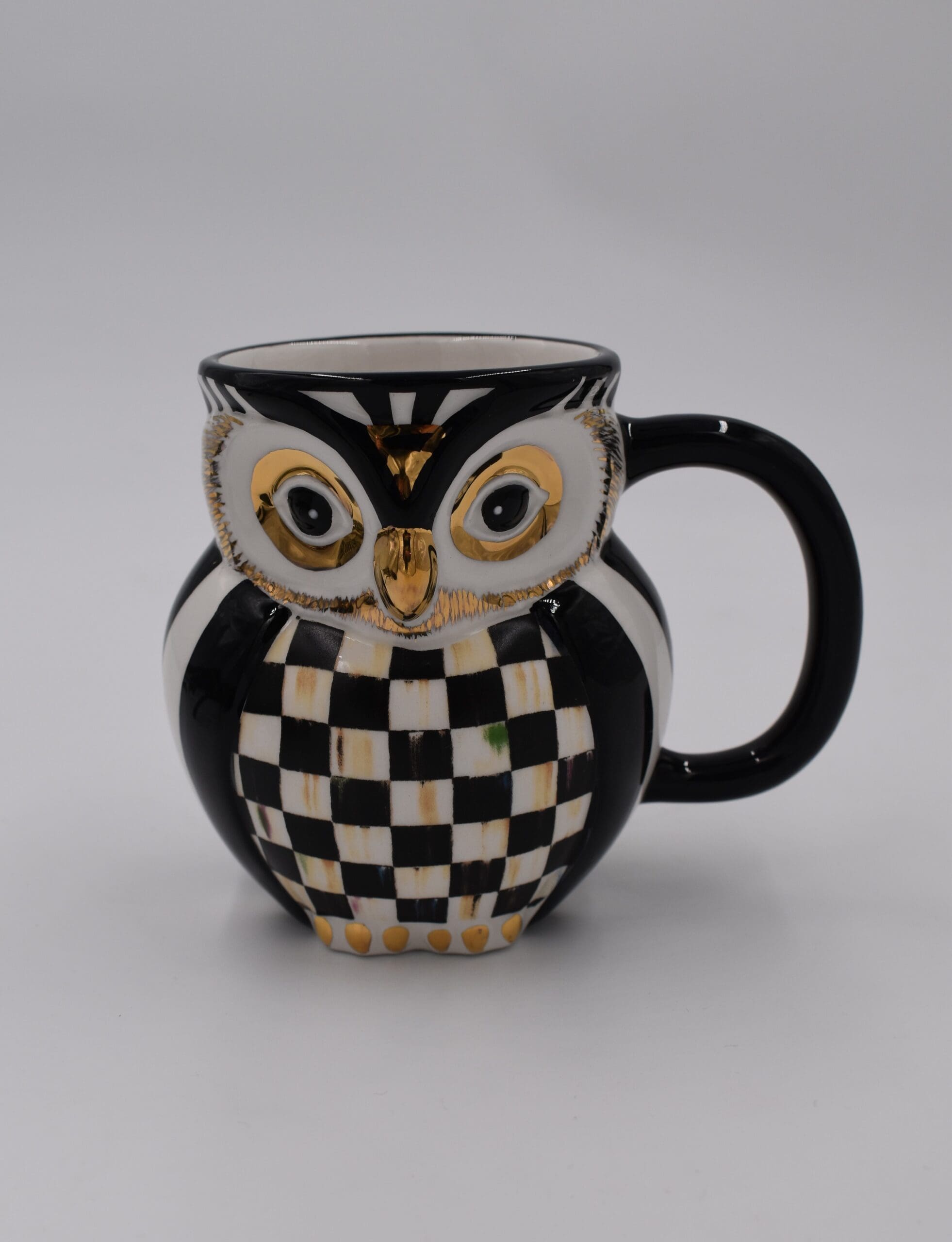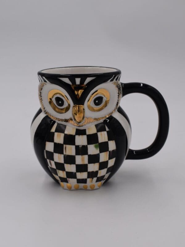 You-hoo! Our Courtly Owl Mug is something to hoot about. This ceramic mug features our signature checks and touches of gold lustre. Perfect for serving warming beverages like hot mulled cider, it also makes an ideal gift for your favorite mug collector.