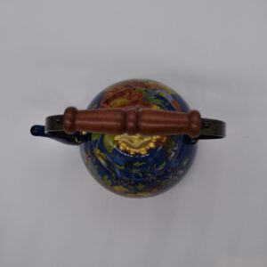 Heavy-gauge, hand-glazed steel underbody embellished with hand-applied floral transfers, rimmed in bronzed stainless steel. Wood handle. Lid is topped with acrylic, brass and glass accents. Pieces may vary due to the handmade nature of each product. Imported.