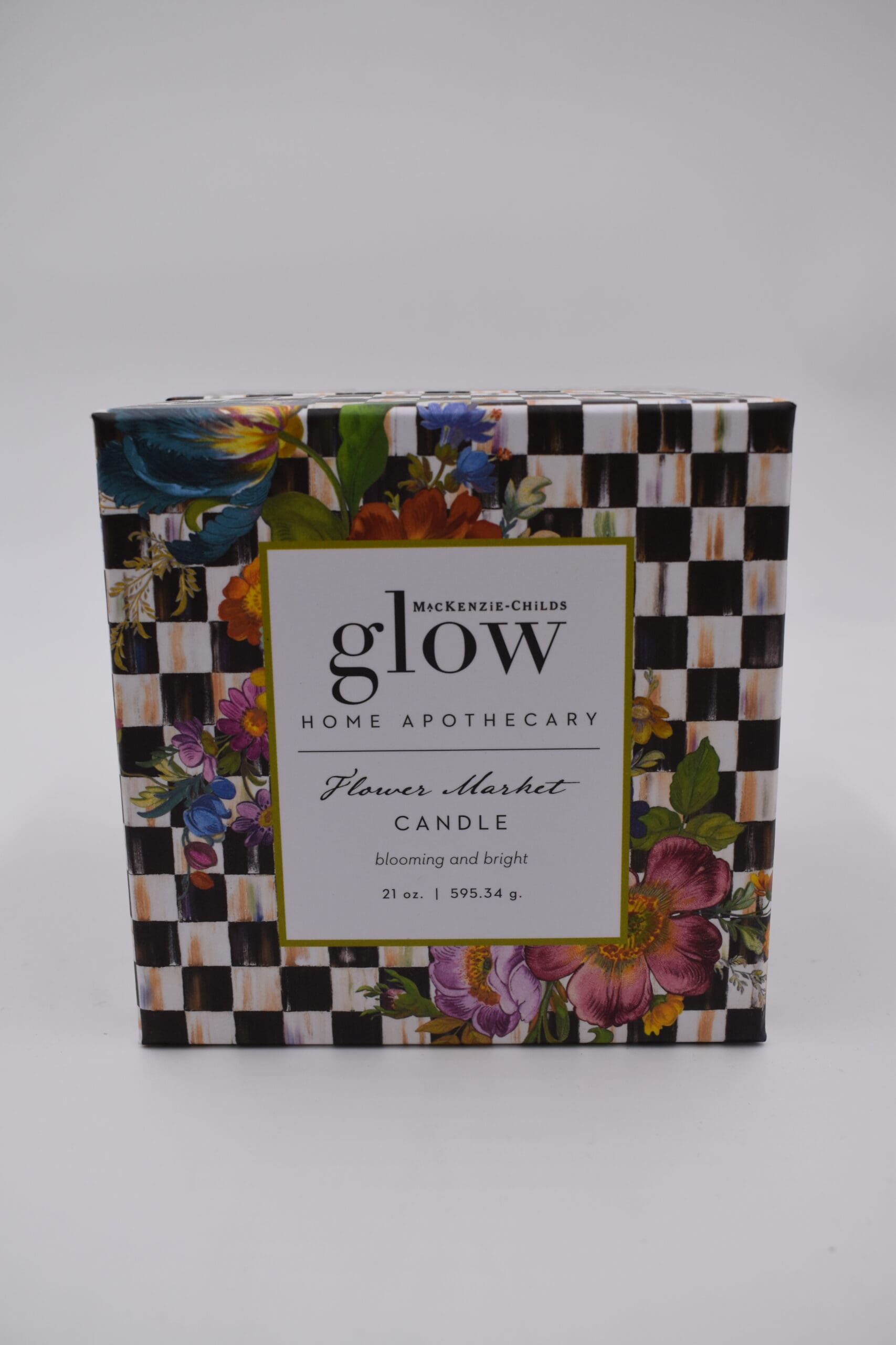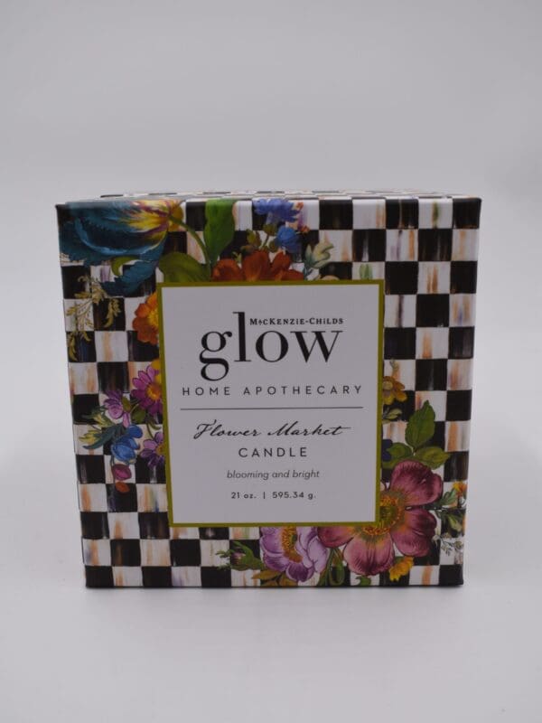 MacKenzie-Childs Glow Home Apothecary defines the essence of home with fresh and inviting scents. Be enlightened by our 21-ounce Flower Market Candle, made of palm and paraffin waxes, that burns up to 66 hours. The fragrance is a blooming and bright blend of market-fresh bouquets with light musk and woody notes.