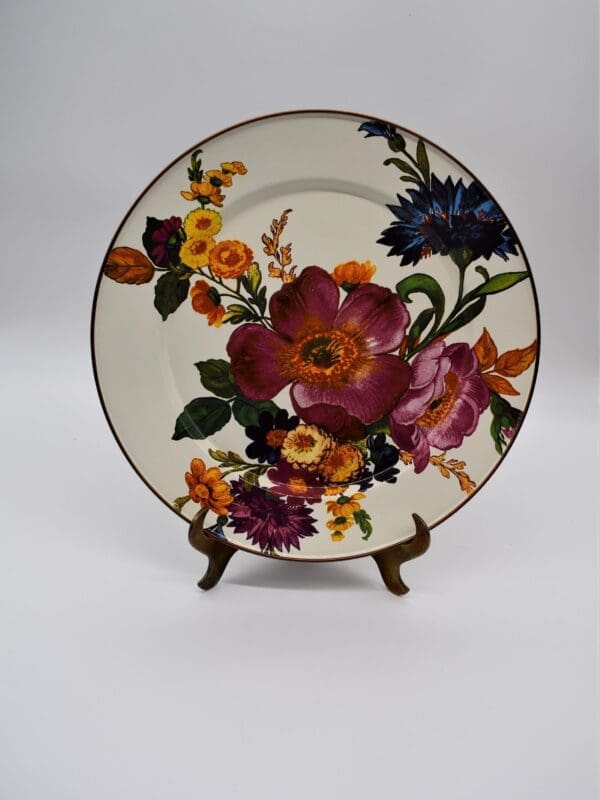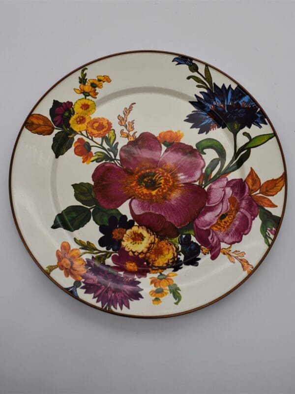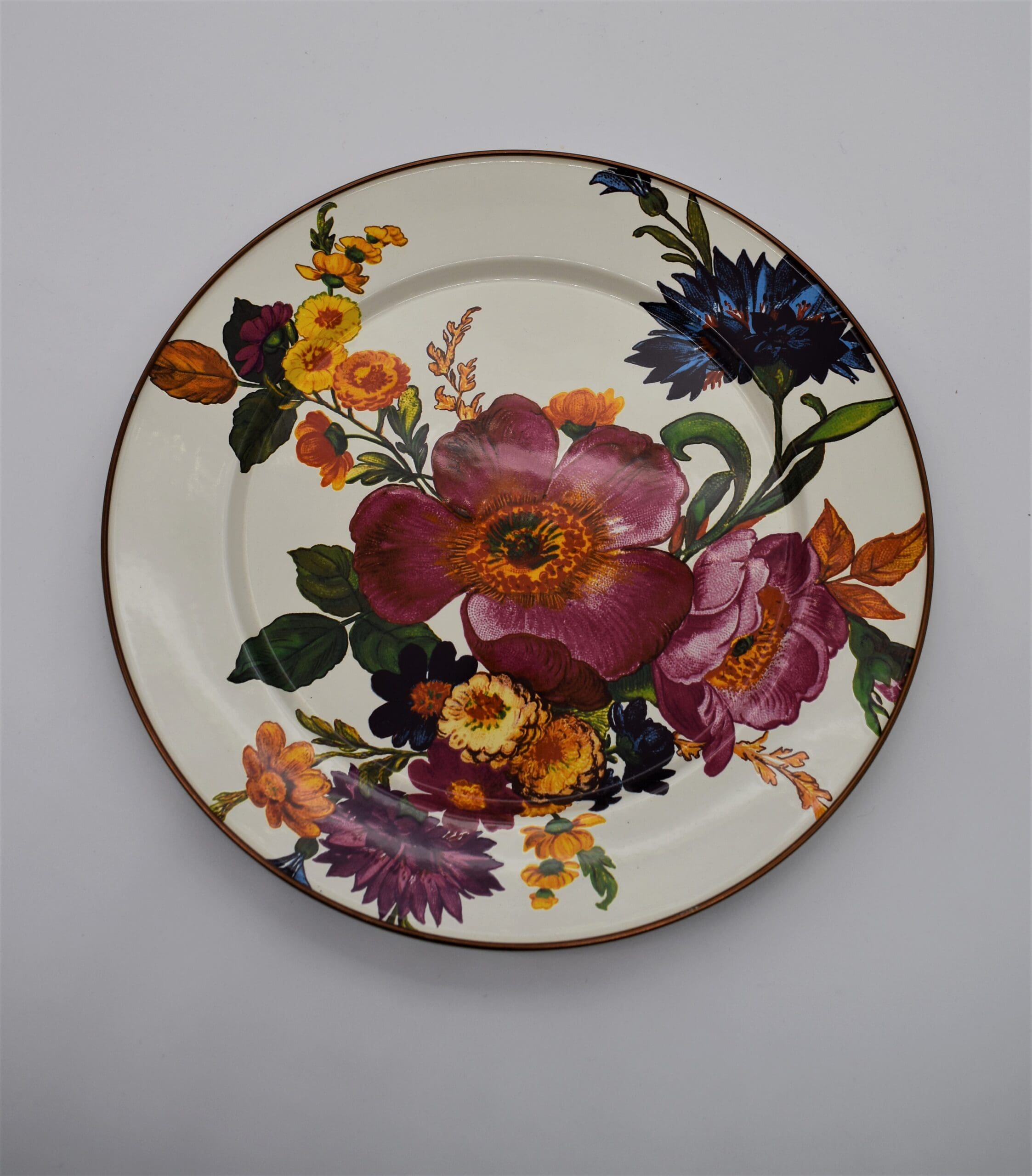 Set a sunny table in glorious color, fresh from a country garden, with White Flower Market Charger/Plates. The garden-fresh design is color-glazed and hand decorated enamelware with floral transfers on both sides. Mix and match colors or pair with Courtly Check® for a fun, fresh look, or for a bold arrangement, choose a single color for the entire table