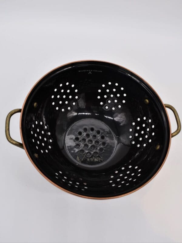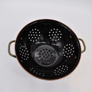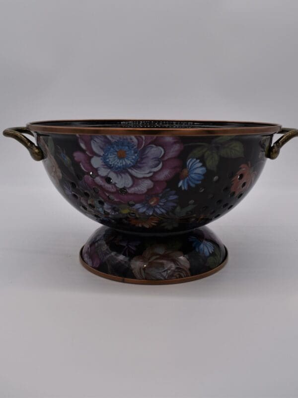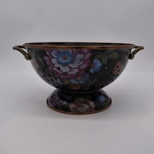 Give stainless steel’s impersonal style and plastic’s halfhearted work ethic the pink slip. There’s a new sous chef in town! For kitchen preparations with personality, look no further than the Large Black Flower Market Colander. Fill with veggies grown in your own garden or hand-picked strawberries for a pleasing hostess gift. Color-glazed in black, green or white, each enamel colander is decorated with hand-applied fanciful botanical transfer decorations that recall a lush English garden in the peak of summer.