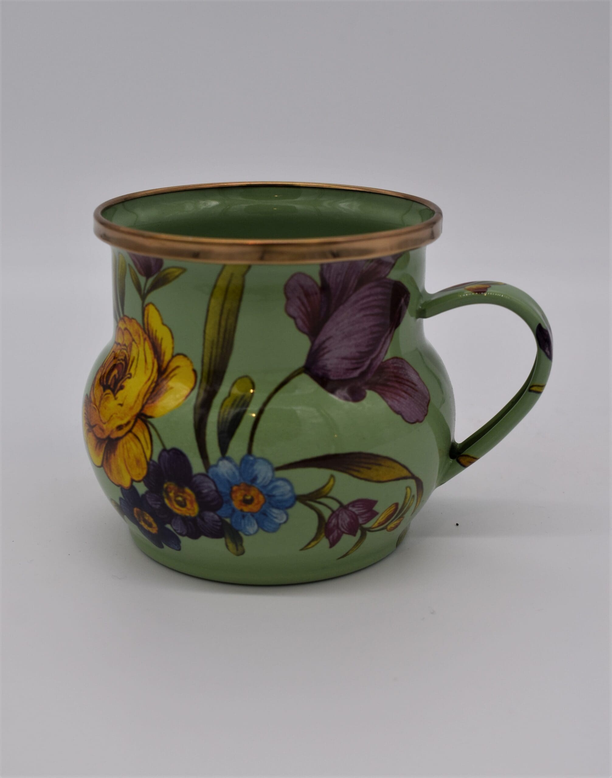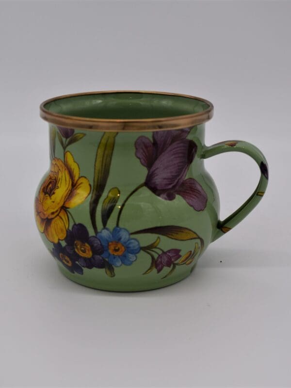 Set a sunny table in glorious color, fresh from a country garden, with Green Flower Market Mugs. The garden-fresh design is color-glazed and hand decorated enamelware with floral transfers. Mix and match colors or pair with Courtly Check® for a fun, fresh look, or for a bold arrangement, choose a single color for the entire table.