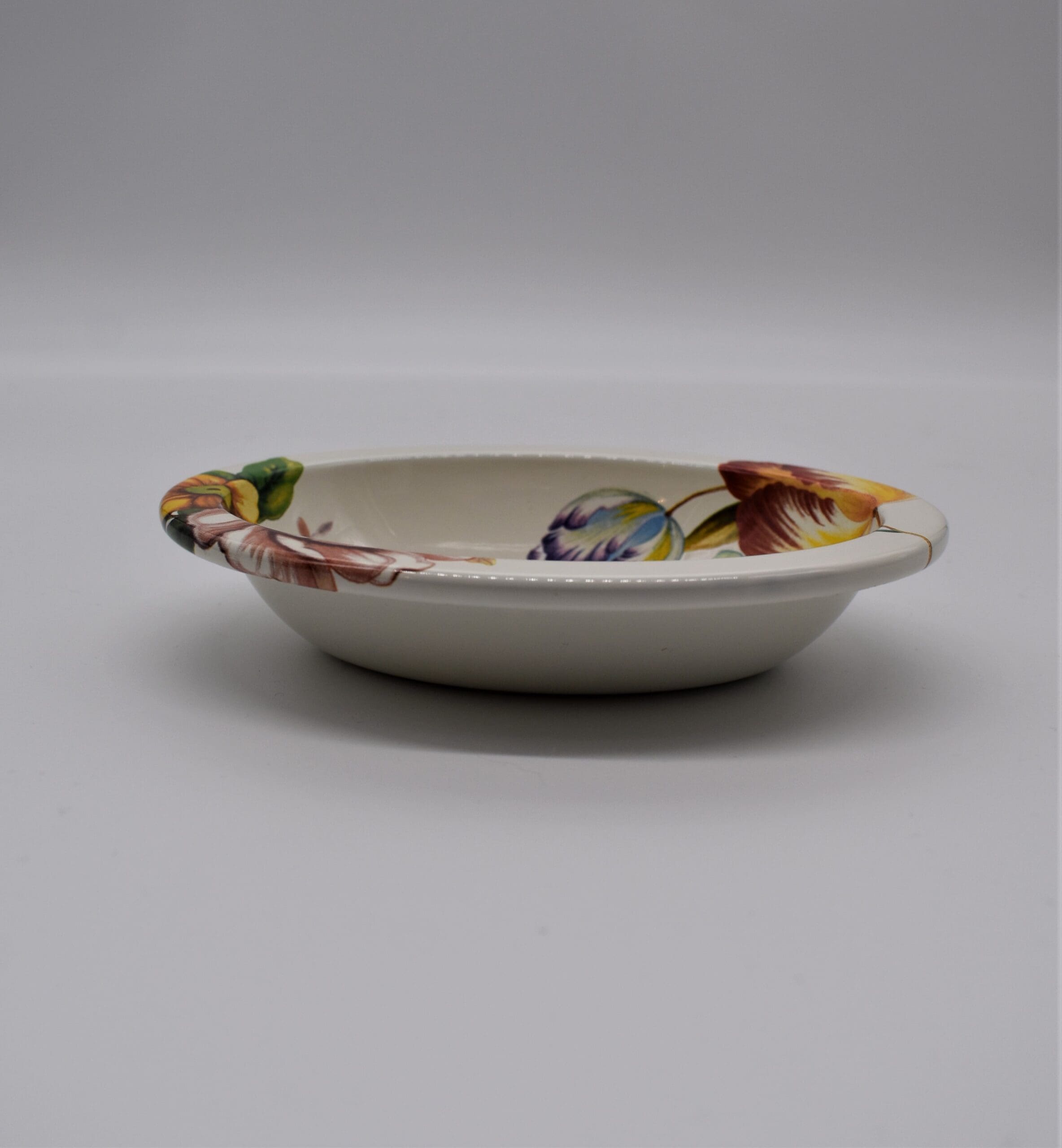 Heavy-gauge, hand-glazed steel underbody with hand-applied floral transfers. Pieces may vary due to the handmade nature of each product. Imported.