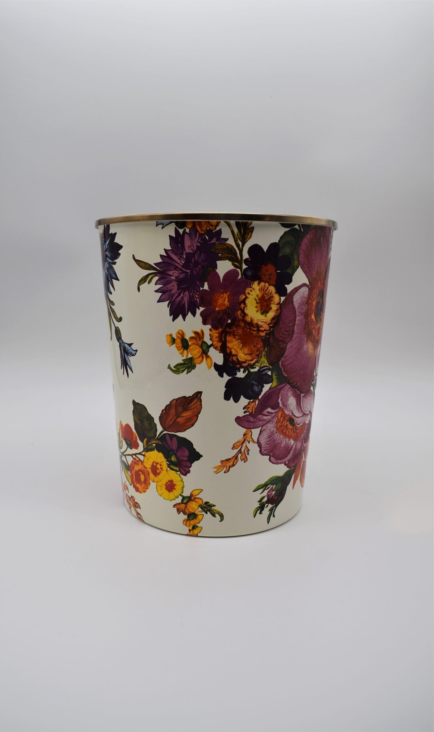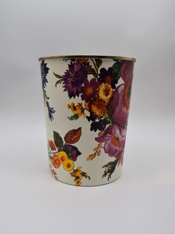 Yes, it would make a beautiful place to throw trash. But if you decide this one’s too pretty for discarded papers, try it for storing flip flops, knitting supplies, tennis balls, magazines or fresh flowers-or as a planter for a fern. Color-glazed in black, green or white, each Flower Market Enamel Waste Bin is decorated with hand-applied fanciful botanical transfers that recall a lush English garden in the peak of summer.