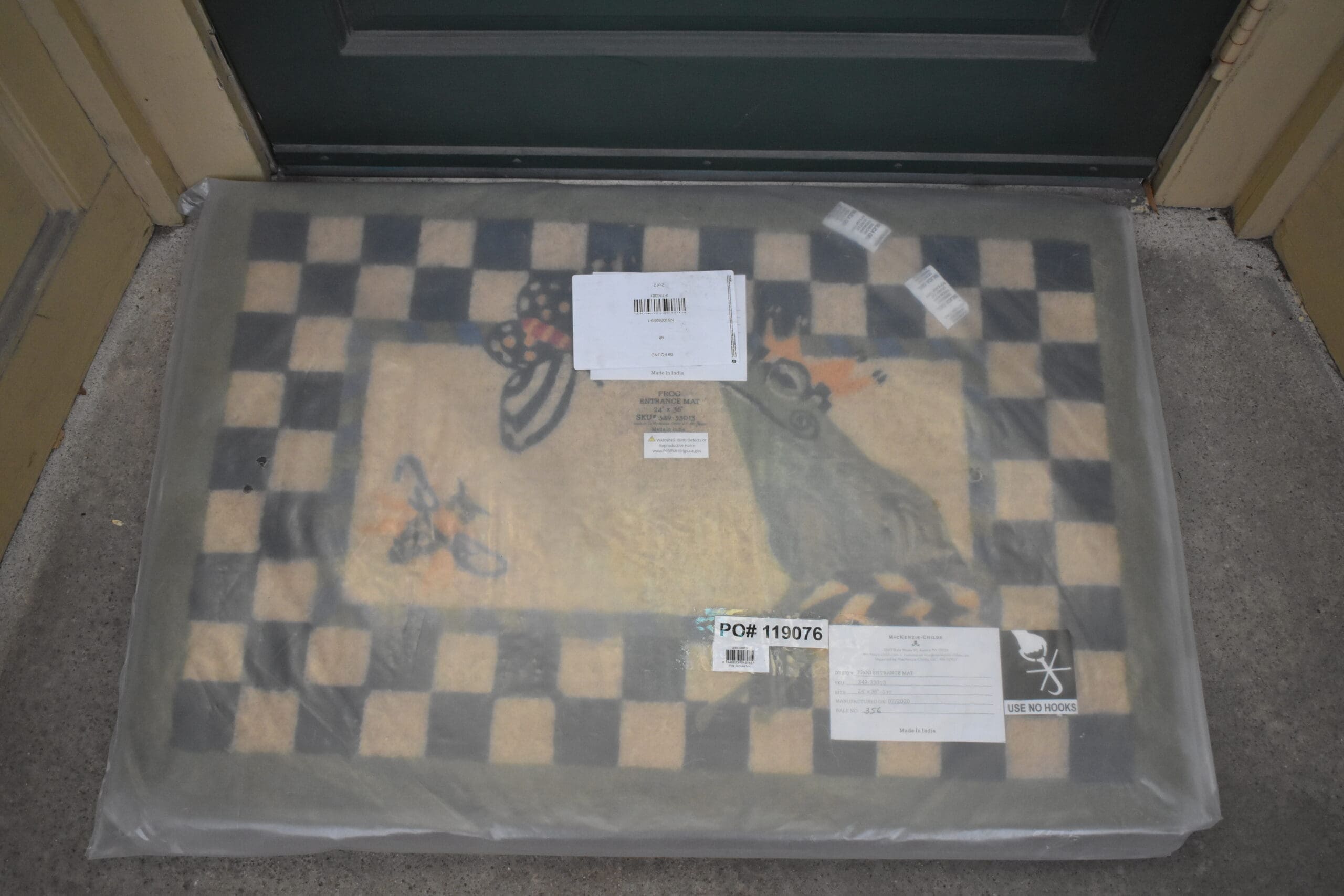 Here on the farm, the rhythmic lullaby of our lily pad philharmonic—the bullfrog bass line, the spring peeper’s twangy strum—is often interrupted by the kerplunk of a splashing soloist, reminding us that no creature embodies irreverent charm quite like the humble frog. Serving up the same juxtaposition of subdued and silly, the Frog Entertaining Collection lets you delight your guests the same way our amphibian ambassadors enchant ours. On our farm, we never feel more like royalty then watching a sunset scored by nature’s early spring symphony of bullfrogs and honeybees. We set out to honor everyday pleasures in the Frog Entrance Mat, featuring our signature checks framing a ribbiting regent with friends all aflutter.