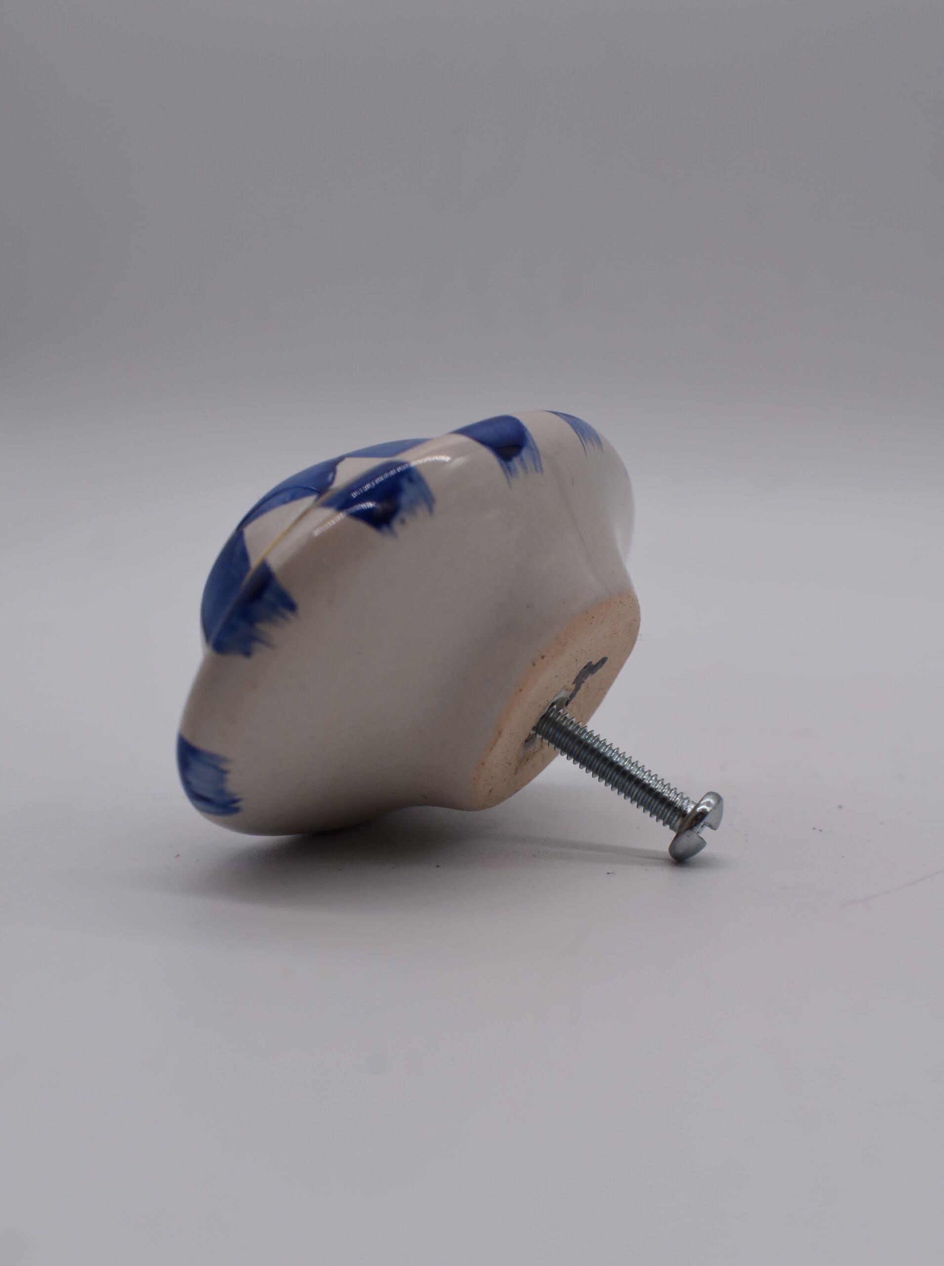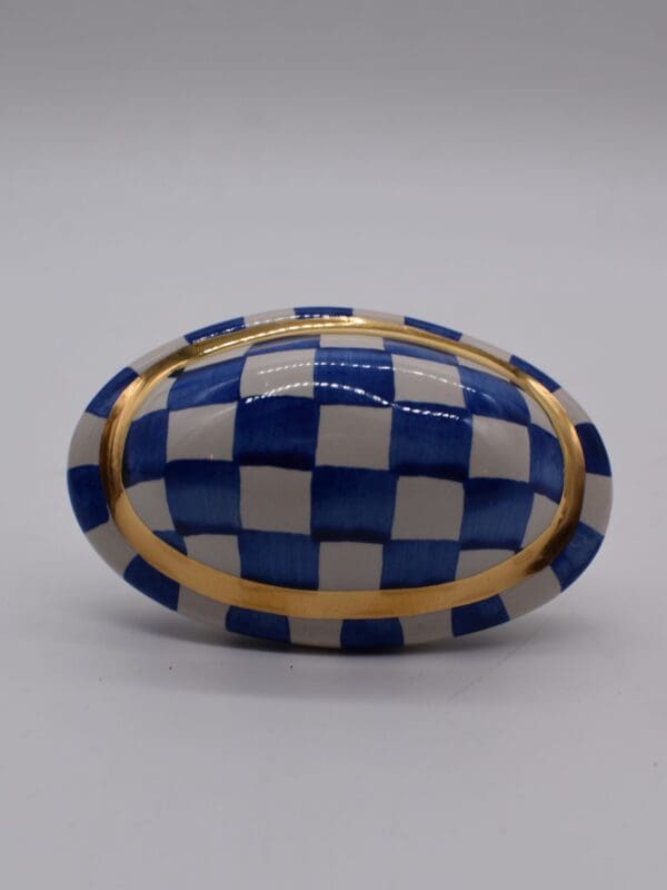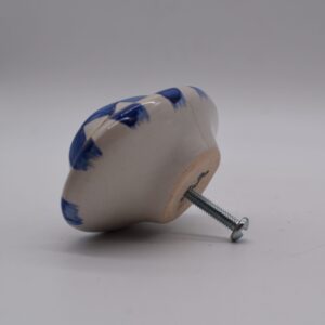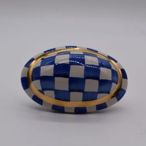 A pretty, petite sculpture unto itself, our hand-painted ceramic Royal Check Kaleidoscope Knob features our Royal Checks in an oval shape, embellished with a bit of gold lustre. It can serve as a regal accent on your most formal furnishings or use it as a drawer pull on an end table for instant personality. It also mixes and matches wonderfully with our other blue and white and Royal knobs to brighten any space with a style all your own.