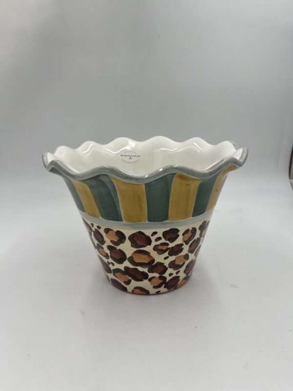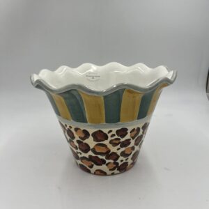 The Leopard Flower Pot is spot on. Perfect, of course, for presenting potted plants, it’s also useful for holding extra hand towels in the bathroom or balls of yarn in the craft room. Handmade and hand-painted in Aurora, and stamped by each artisan involved in its creation, this charming ceramic features the fun of an animal print mixed with traditional stripes.