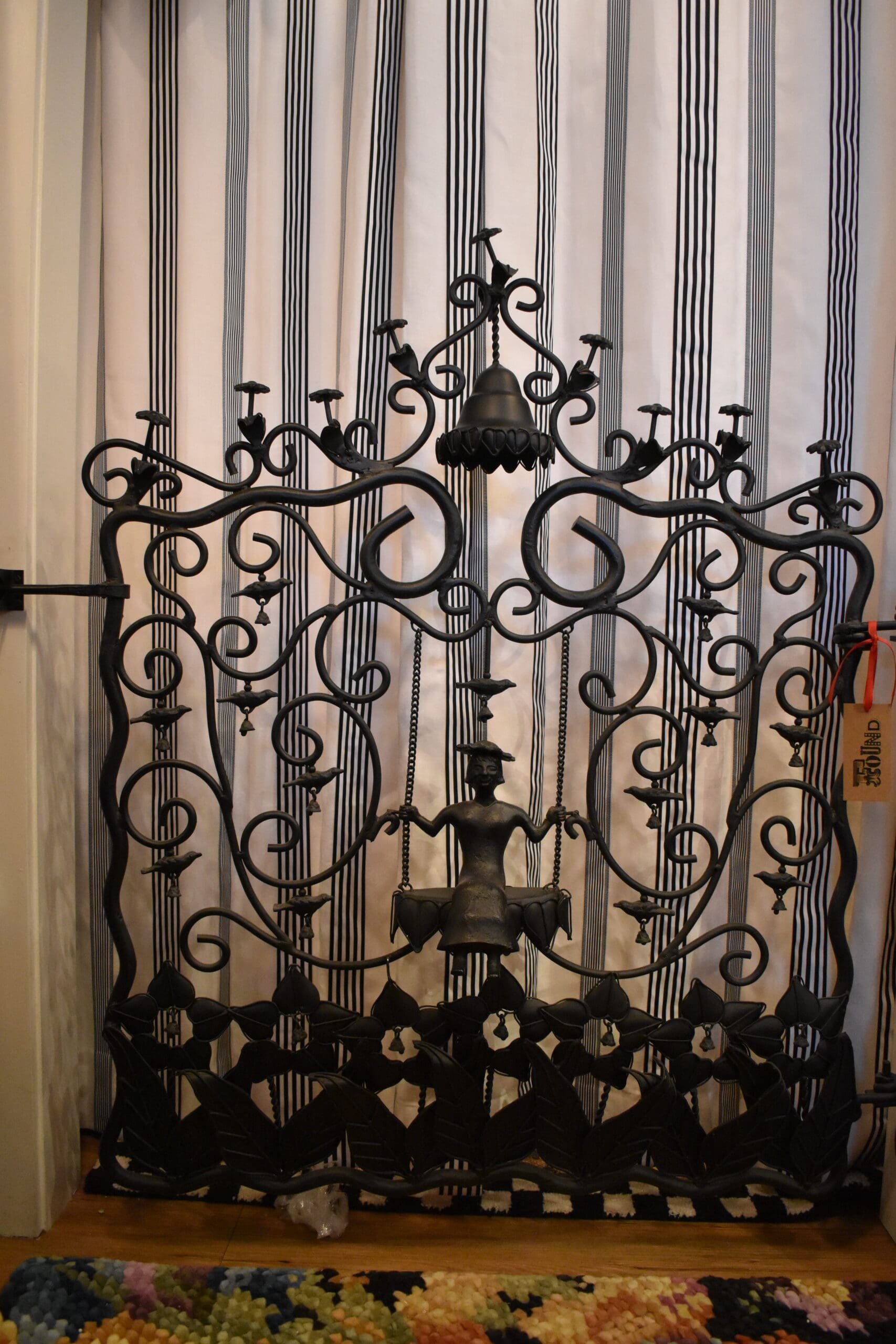 Remember that childhood neighbor, the one who spoiled you with home-baked treats and stories equally as sweet? Well, she’s back, charming as ever, immortalized in the Mrs. Powers Garden Gate. Wrought of forged iron in a rich black-brown finish and surrounded by blooming flowers, swooping curlicues, and bells, this grand dame of the garden perches on a sunflower swing, sprightly as the spring chicken she’s always been at heart.