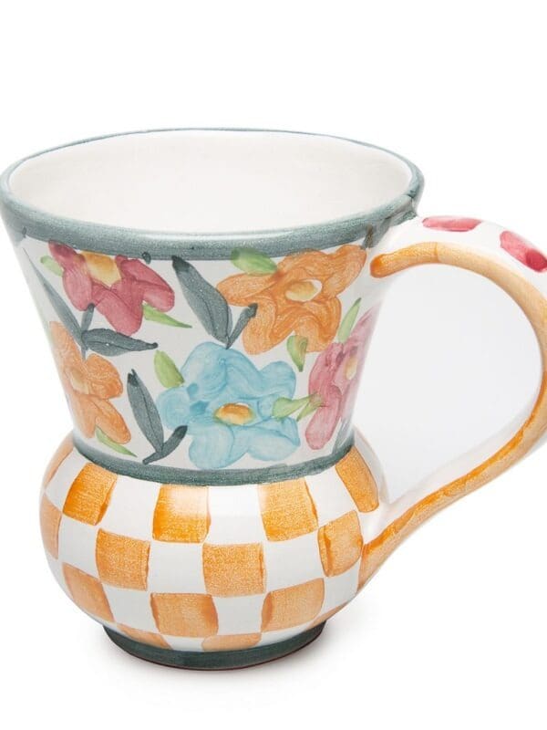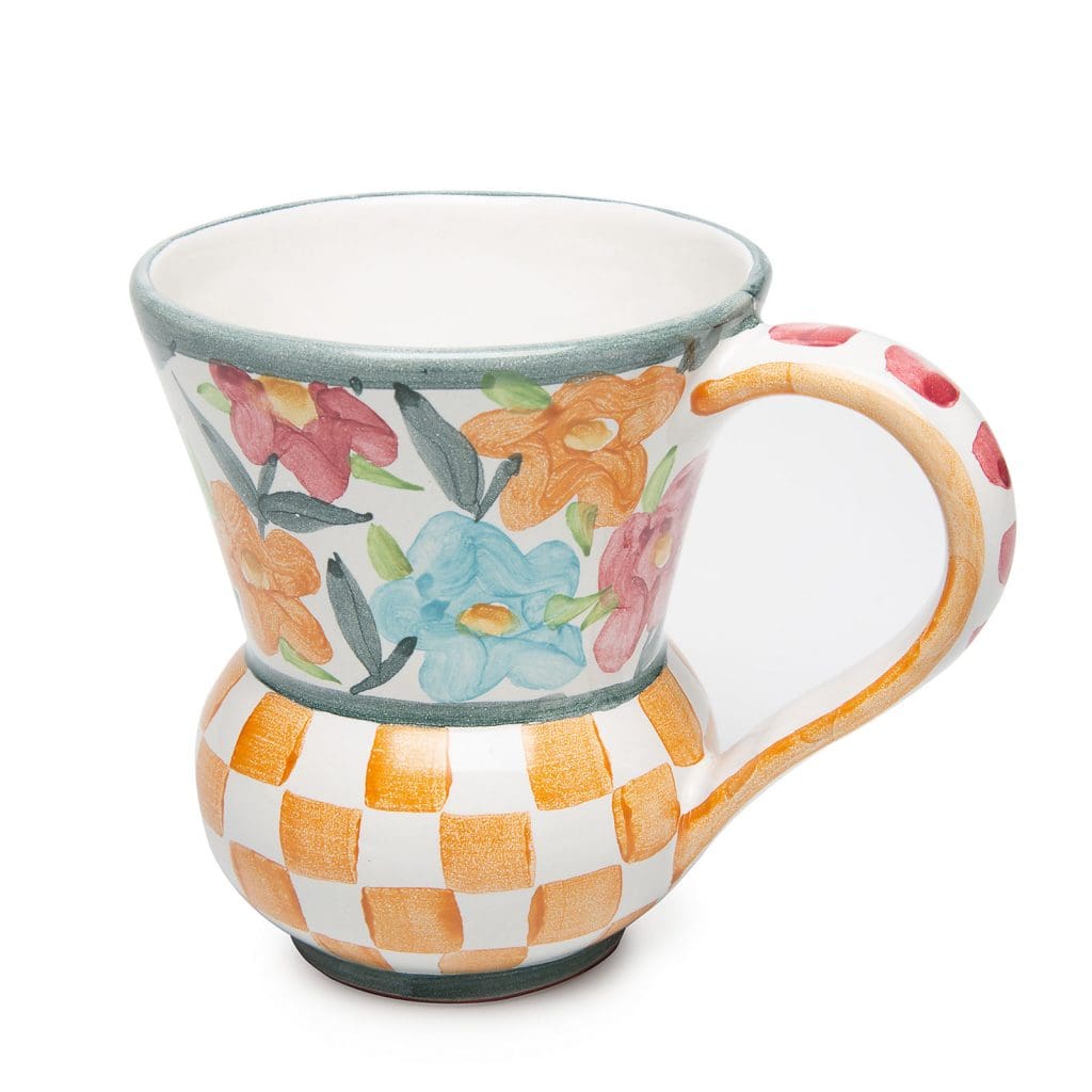 For a frothy morning cappuccino or hot milk before bedtime, our Painted Garden Mug promises to warm your body and soul. Crafted start to finish in Aurora, New York, its cozy silhouette is made of earthen clay with a charming hand-painted pattern featuring colorful stripes and flowers.