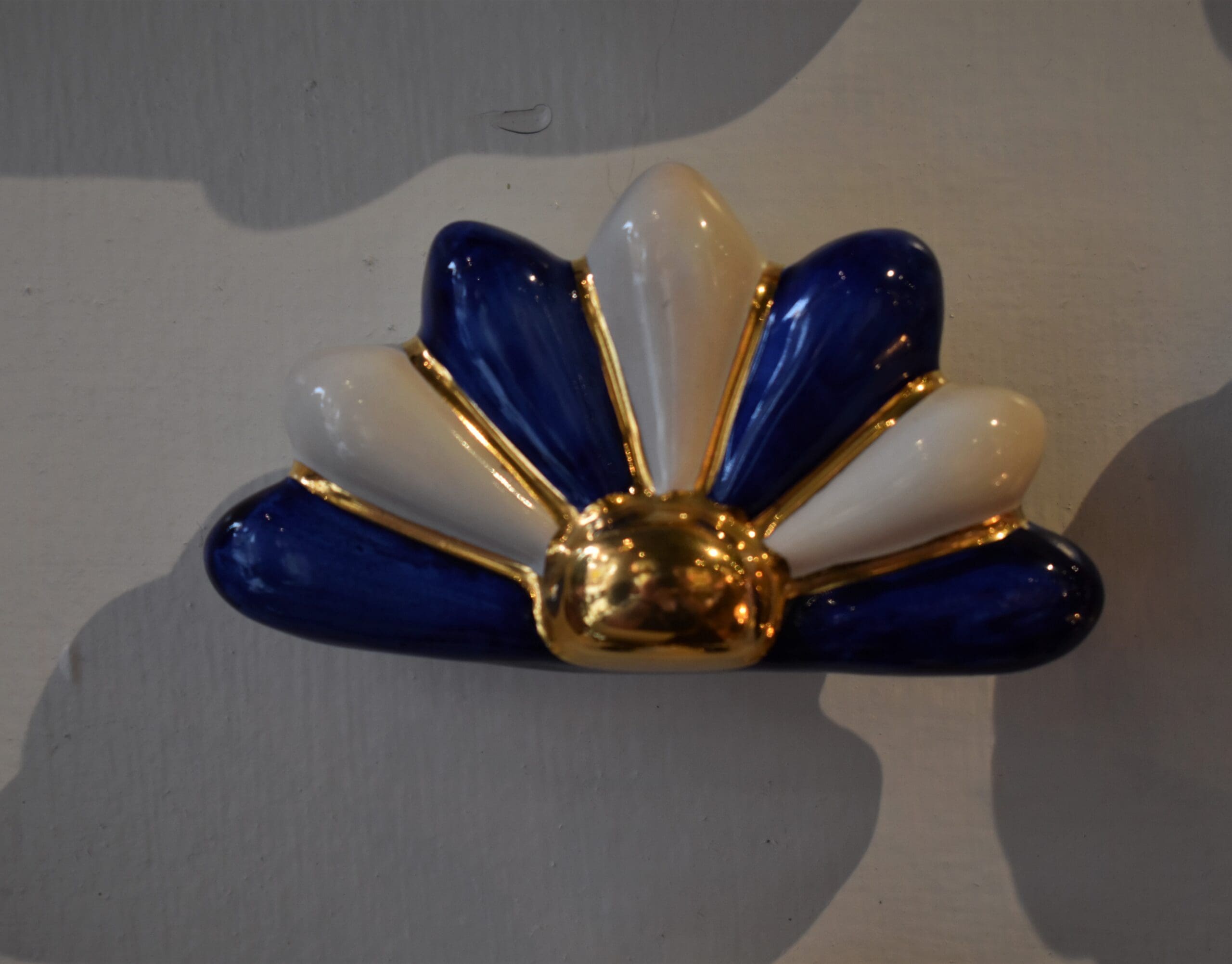 Strut your stuff with our Blue & White Peacock Knob, which is quite handsome from any distance. Hand-painted in the shape of a peacock’s plume onto a petite ceramic silhouette, it features touches of gold lustre. Peacock Knobs mix and match wonderfully with each other and our other knob patterns to brighten any space with a style all your own.