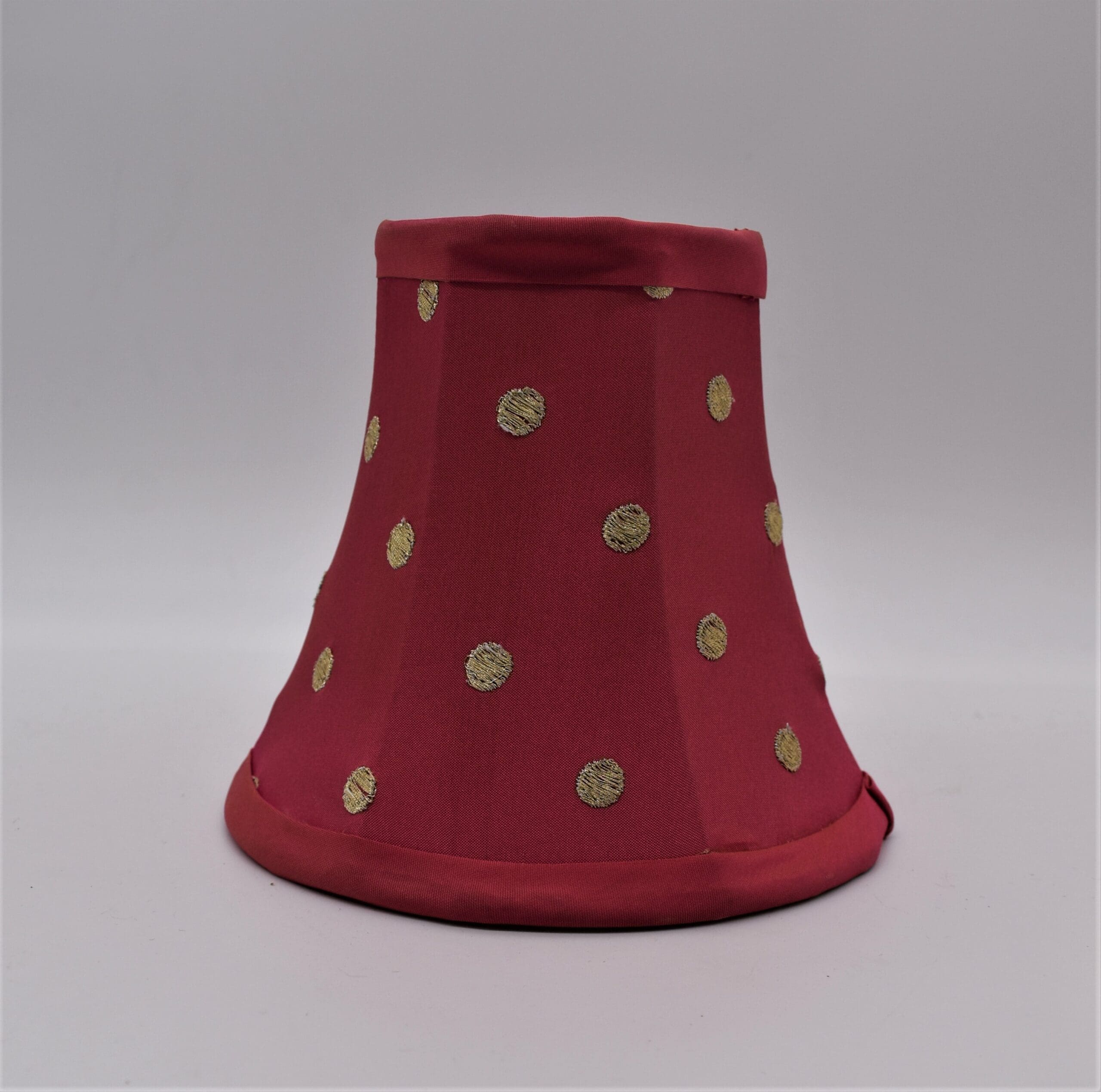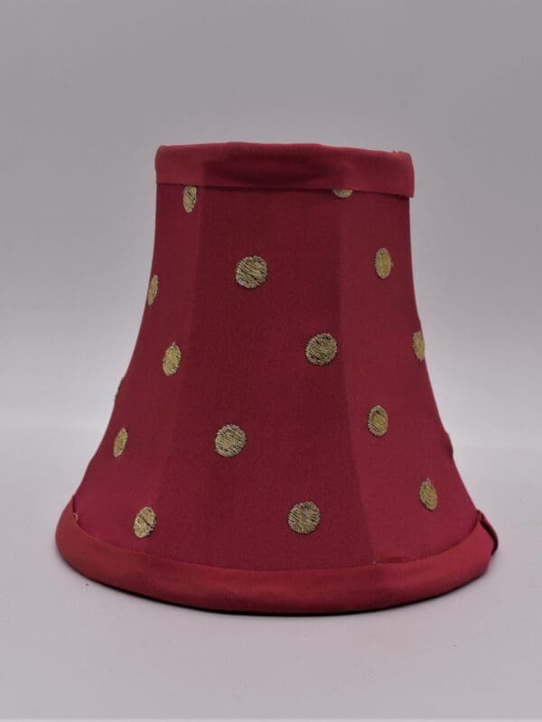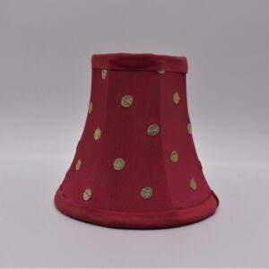 Looking to update a lamp or a chandelier that needs a little something extra? Add our Pink Polka Dot Chandelier Shade, made of dupioni silk with embroidered metallic gold dots