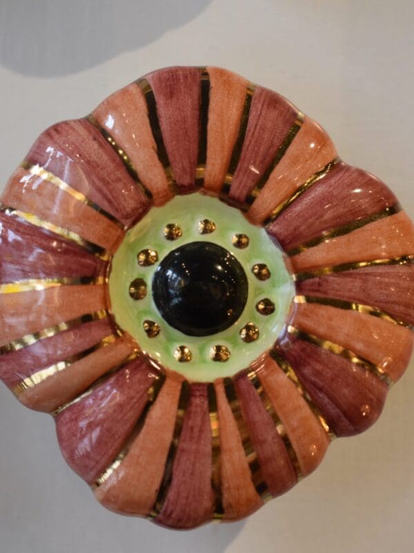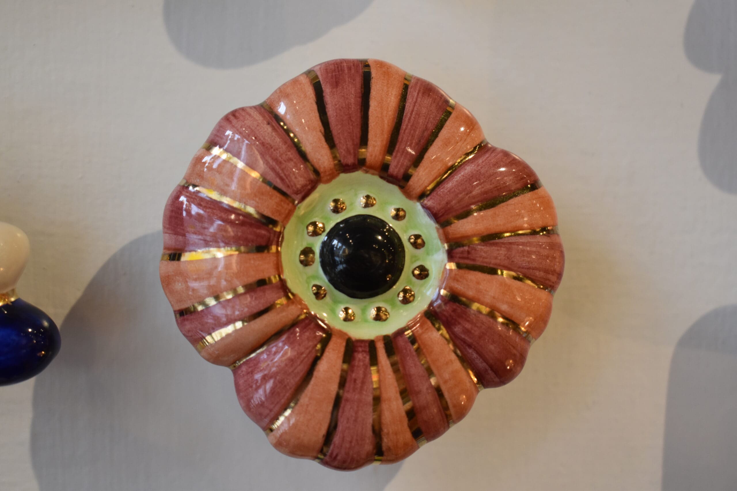 A pretty, petite sculpture unto itself, our ceramic Poppy Knob is crowned with a simple blossom, embellished with a bit of gold lustre. An homage to the gardens at our Aurora, New York, studio, it can serve as a regal accent on your most formal furnishings, or use it as a drawer pull on an end table for instant personality. It also mixes and matches wonderfully with our other knob patterns to brighten any space with a style all your own