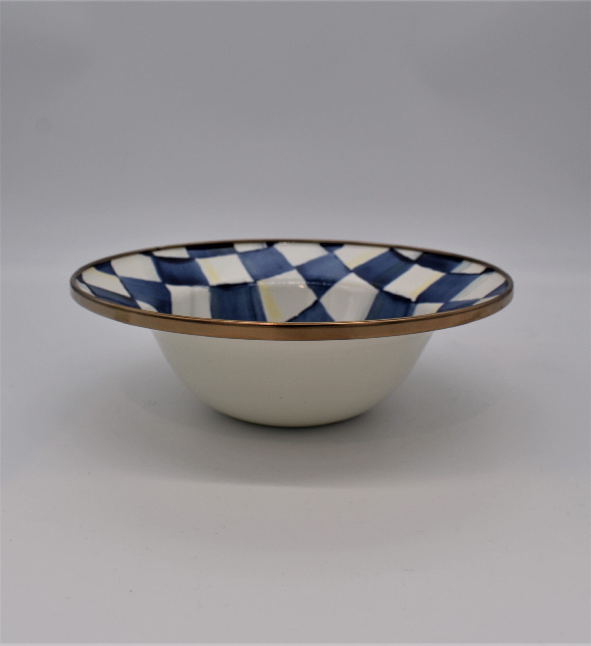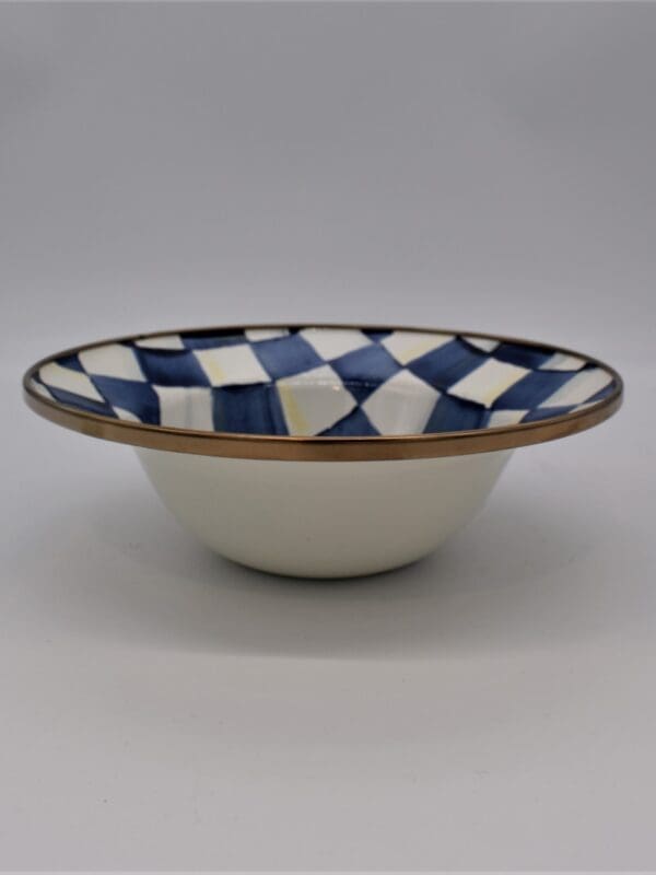 If the morning meal is indeed the most important, doesn’t it deserve to be enjoyed in style? Take a moment out of your hectic schedule to start your day right with our Royal Check Breakfast Bowl. Similar in theme to our signature Courtly Check® enamel pattern, Royal Check checks all our boxes. It’s happy, it’s clean, and it’s classic. The heavy-gauge steel underbody is glazed with hand-painted, color-dragged checks in a range of blue hues and rimmed in bronzed stainless steel. Each piece of Royal Check reflects the artisan’s hand, so no two are exactly alike, although they all work together in perfect harmony.