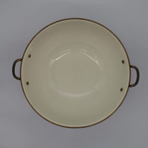 Hand-wash with mild soap and dry immediately. All of our enamelware exceeds both federal food safety regulations and California's Proposition 65, the strictest environmental safety standards in the U.S. Handle enamelware with care, and discontinue use for food service if it becomes chipped, cracked, or broken.