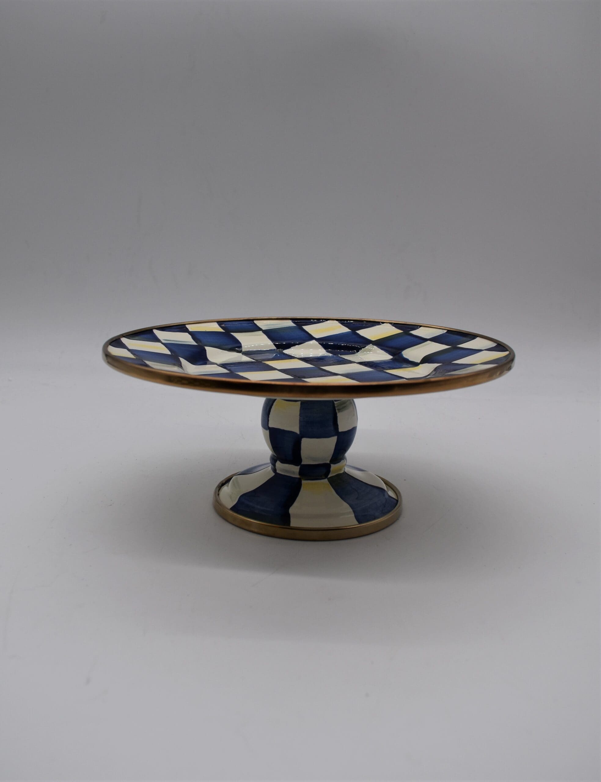 Heavy-gauge, hand-glazed steel underbody with hand-painted Royal Checks, rimmed in bronzed stainless steel. Pieces may vary due to the handmade nature of each product. Imported.