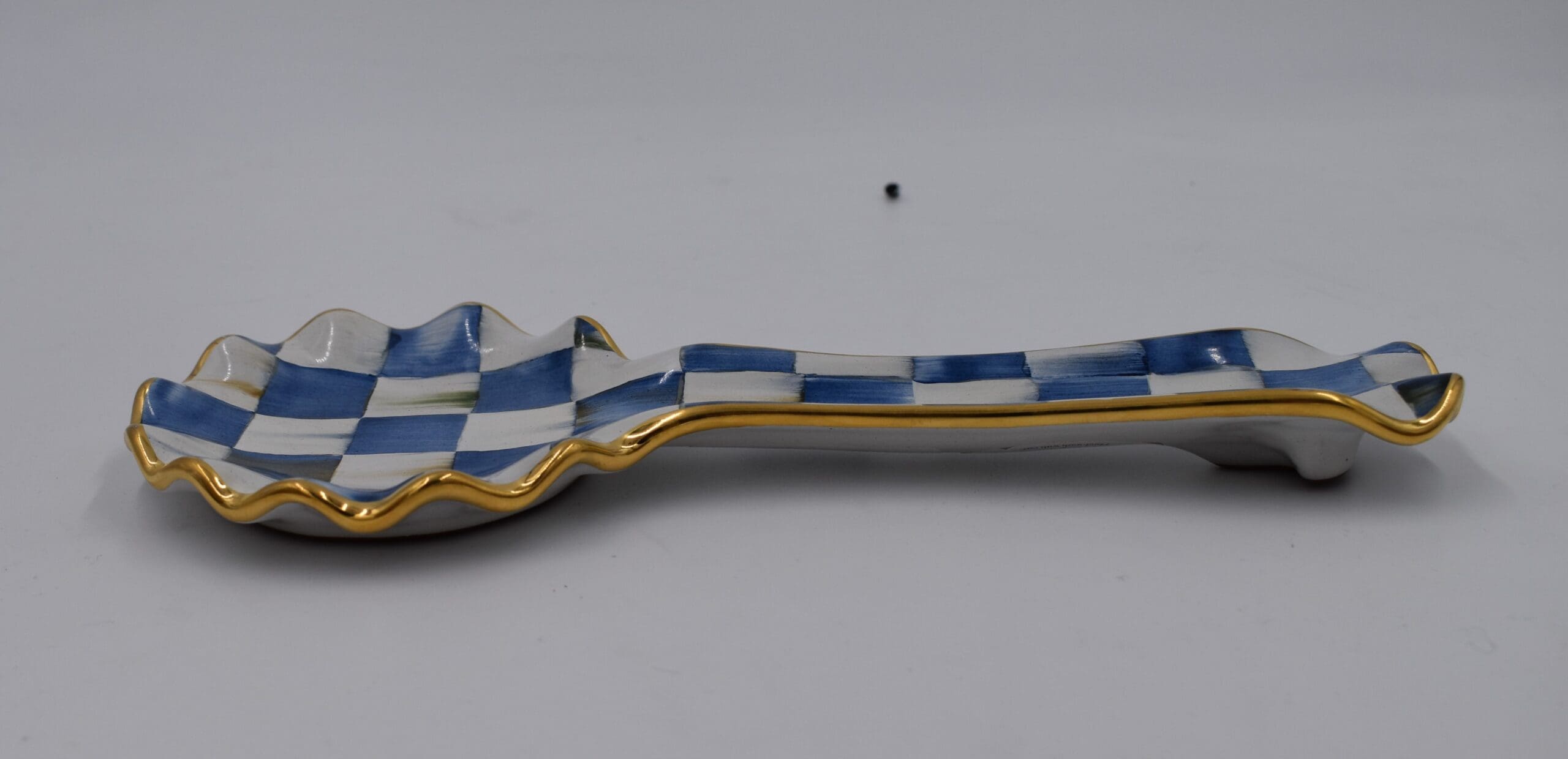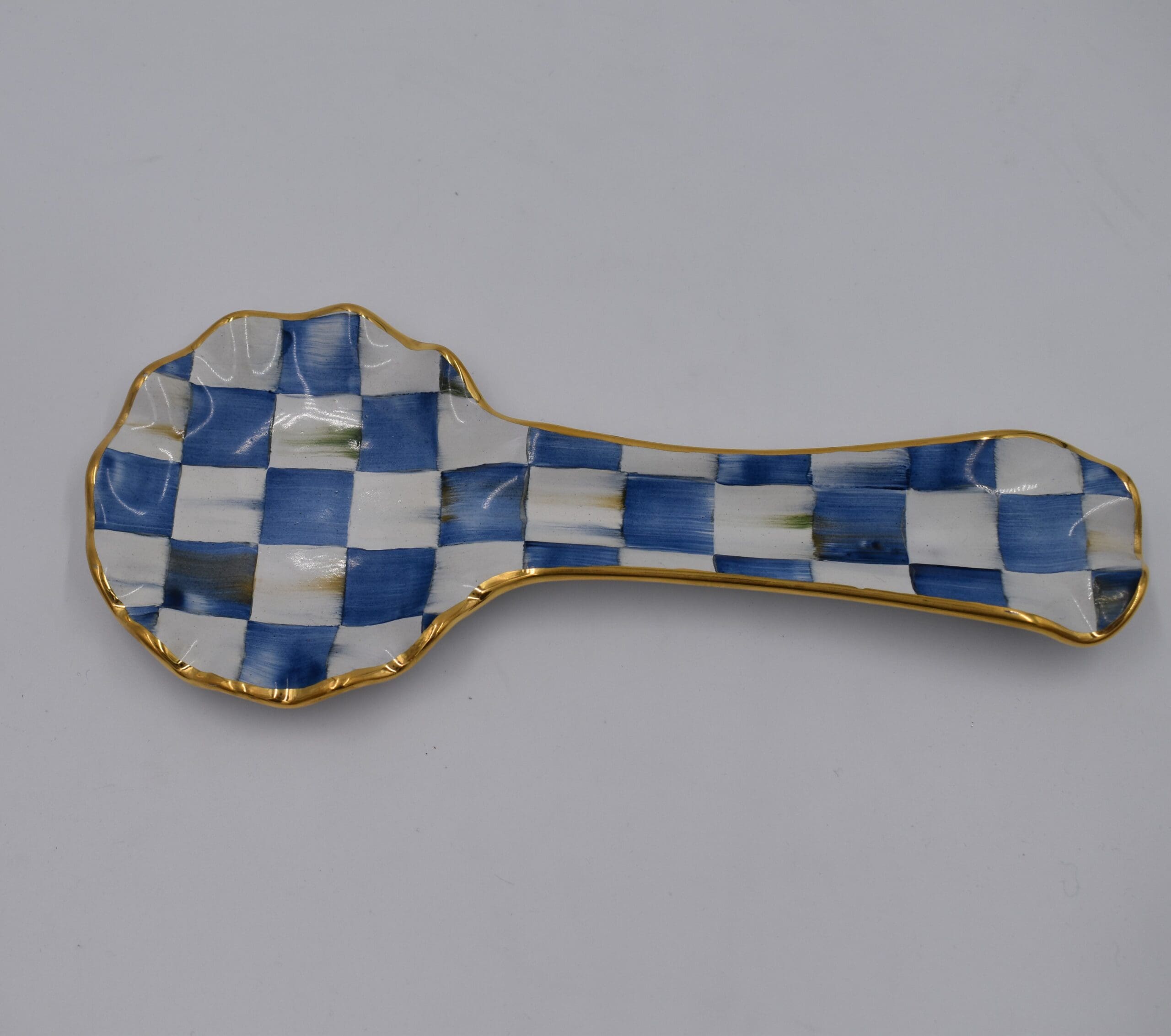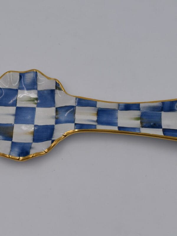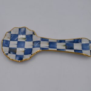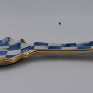 Handmade in Aurora, New York, our ceramic designs hold a special place in our hearts. Turn over each Royal Check Spoon Rest to see the stamps of the artisans who helped create it. A beautiful juxtaposition of blue hues, our deceptively simple signature checks reveal an intricate spectrum of jewel-toned colors. Handmade, fired, glazed, fired again, hand-painted, embellished with lustre, and fired again, each piece is stamped by the artisans involved in its creation. Each piece of Royal Check reflects the artisan’s hand, so no two are exactly alike, although they all work together in perfect harmony.