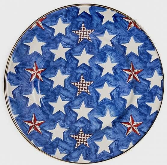 Get ready for all-star celebrations with the Royal Star Enamel Salad/Dessert Plate. The heavy-gauge steel underbody is glazed and decorated with checked and striped stars, rimmed in bronzed stainless steel. Perfect for making your summer soirée simply spectacular.