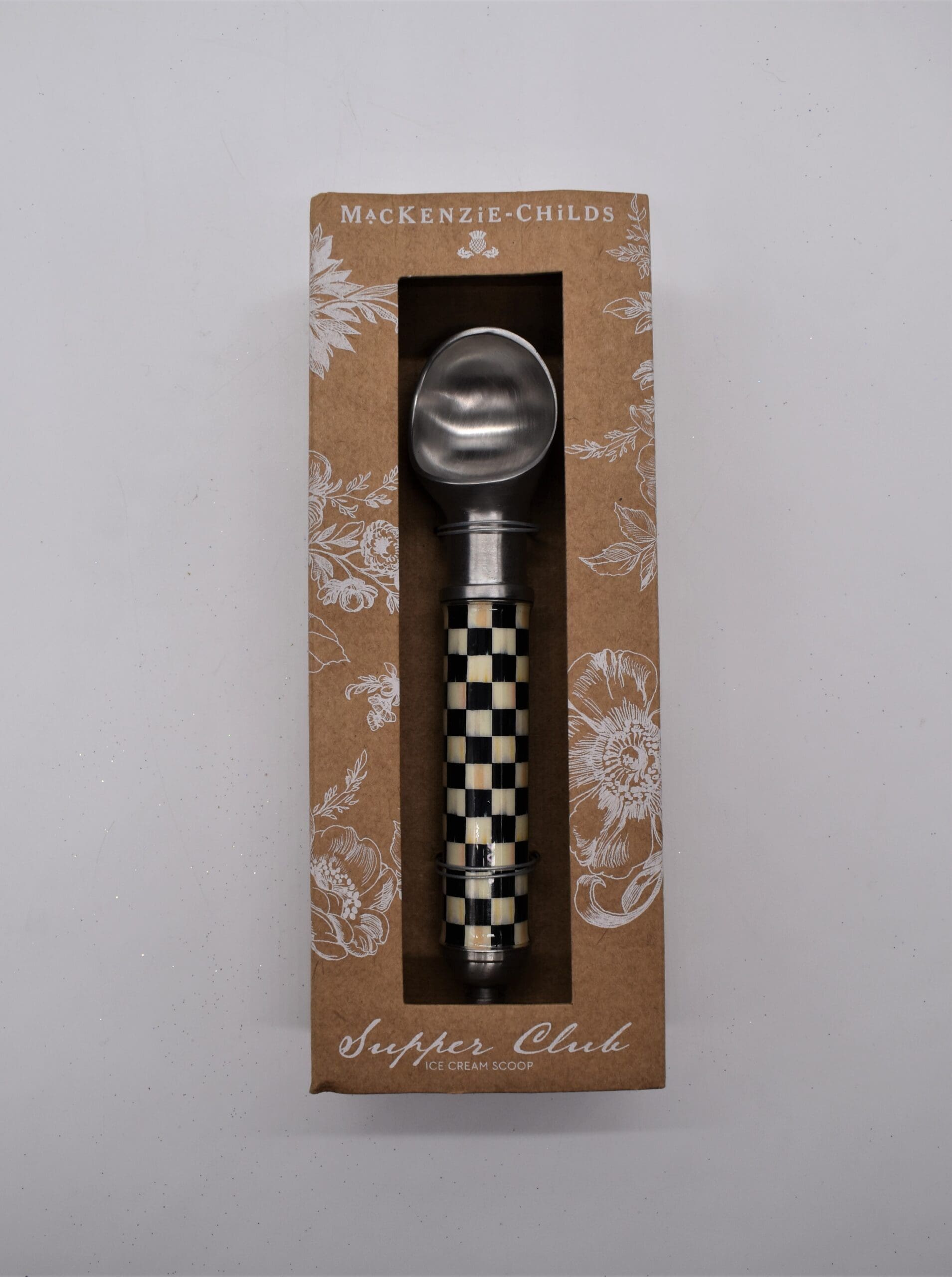 Scoop up a delightful dish of sorbet, sherbet or a traditional ice cream sundae with our Courtly Check® Supper Club Ice Cream Scoop. Made of stainless steel, the handle has a clear enameled coating bedecked in our signature black and white checks. Makes a thoughtful hostess or housewarming gift, too.