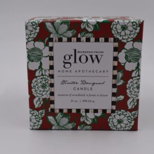 MacKenzie-Childs Glow Home Apothecary defines the essence of home with fresh and inviting scents. Be enlightened by our 21-ounce Winter Bouquet Candle, a blend of palm and paraffin waxes, that burns up to 66 hours. The scent is fresh and clean, evoking a forest in bloom, featuring fresh-cut fir trees melding with the warm embers of spicy cloves.